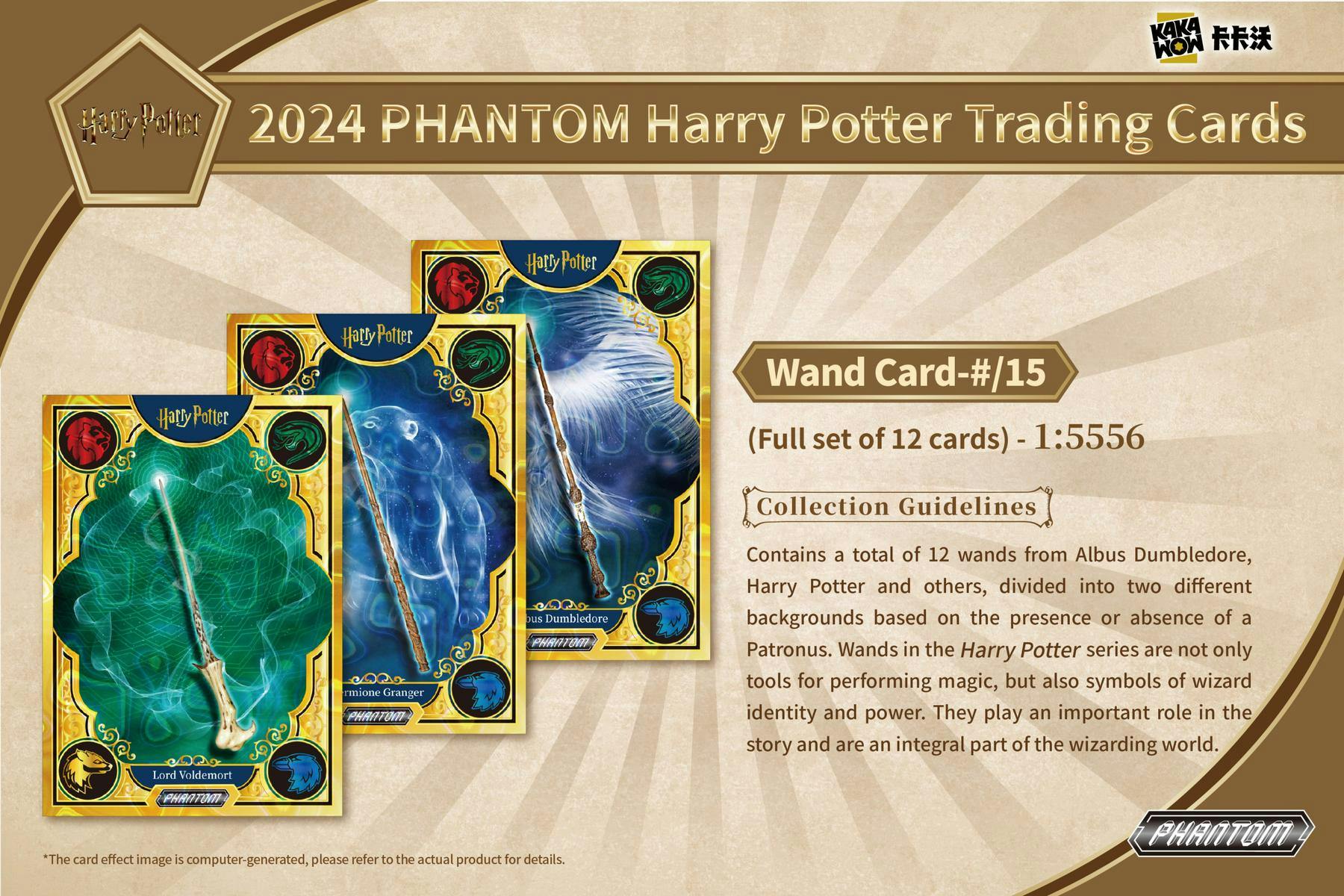 Contains a total of 12 wands from Albus Dumbledore, Harry Potter and others, divided into two different backgrounds based on the presence or absence of a Patronus. Wands in the Harry Potter series are not only tools for performing magic, but also symbols of wizard identity and power. They play an important role in the story and are an integral part of the wizarding world.